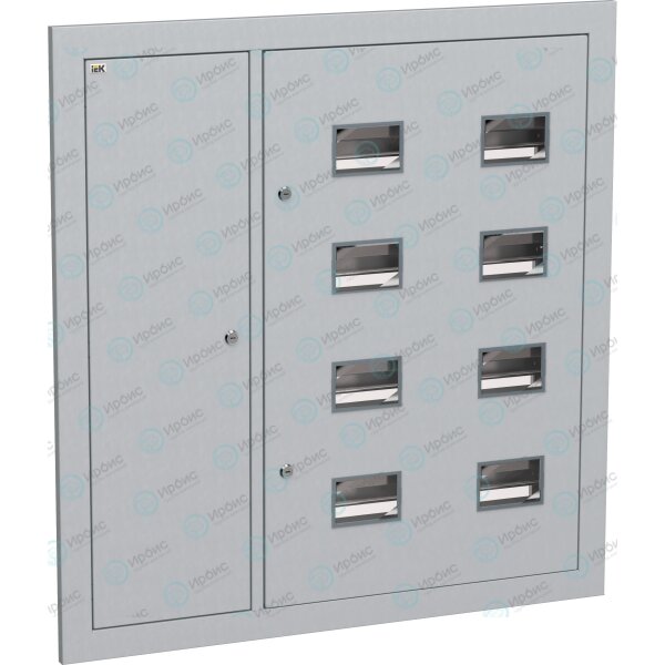 Сварной металлический корпус состоит из двух отсеков: вводно-учетный и распределительный объединены в один, второй – отсек слаботочного оборудования (расположен слева). В вводно-учетном, распределительном отсеках размещены DIN-рейки для крепления счетчиков (по количеству квартир), аппаратов групповых линий и рейка для установки шин N и РЕ. Отсек укомплектован оперативной панелью. Отсек слаботочного оборудования снабжен перфорированными профилями для прокладки теле- и радиосетей, телефонных линий, сетей охранной сигнализации, домофонов и т.п. Для обеспечения пожарной безопасности между слаботочным и силовым отсеками расположена разделительная перегородка.