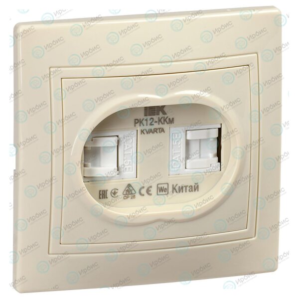 KVARTA Розетка 2-местная компьютерная RJ45 кат.5е РК12-ККм кремовый GENERICA