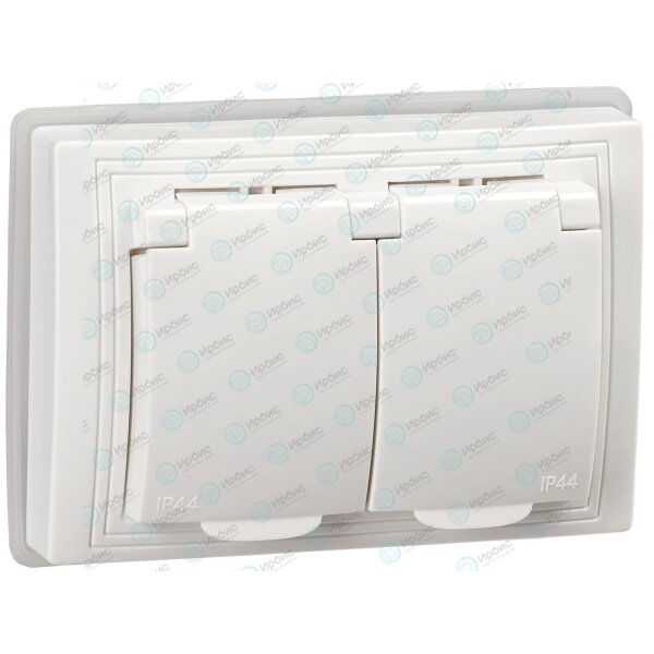 KVARTA Розетка 2-местная с заземлением с защитными шторками с крышкой 16А IP44 РСбш12-3-КБ-44 белый