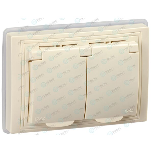 KVARTA Розетка 2-местная с заземлением с защитными шторками с крышкой 16А IP44 РСбш12-3-ККм-44 кремо