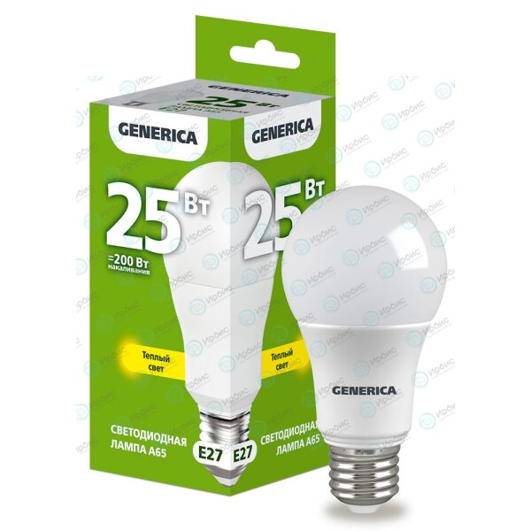 Лампа светодиодная A65 груша 25Вт 230В 3000К E27 GENERICA