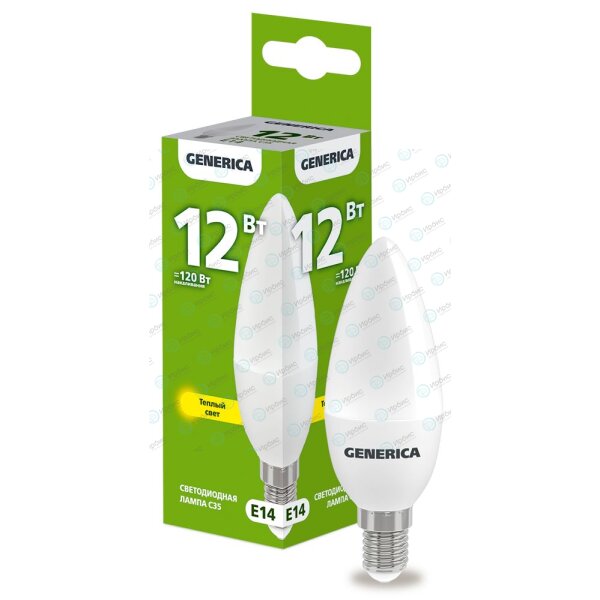 Лампа светодиодная C35 свеча 12Вт 230В 3000К E14 GENERICA
