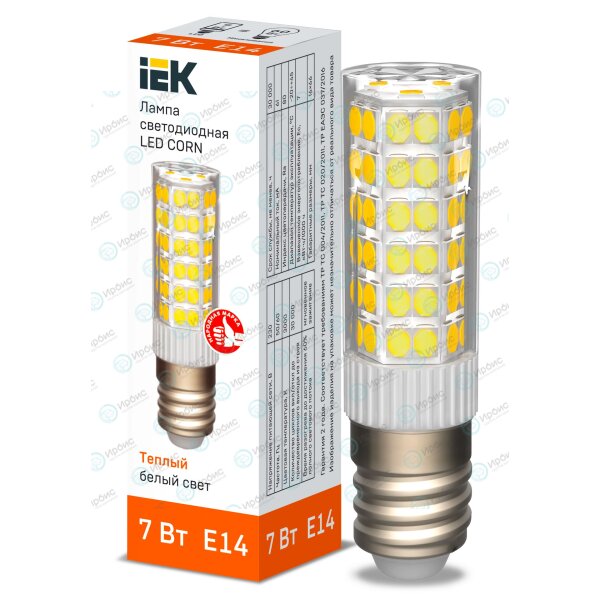 Светодиодная капсульная лампа LED CORN капсула 7Вт 230В 3000К керамика E14 IEK является заменой капсульных галогенных ламп соответствующего цоколя и используются как для основного освещения жилых и коммерческих помещений, так и для точечной и акцентной подсветки.
