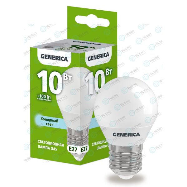 Лампа светодиодная G45 шар 10Вт 230В 6500К E27 GENERICA
