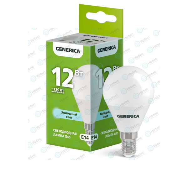 Лампа светодиодная G45 шар 12Вт 230В 6500К E14 GENERICA