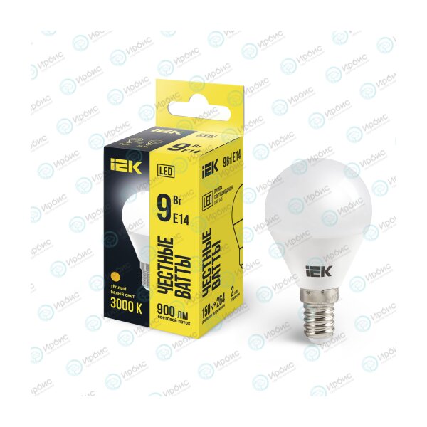 Лампа светодиодная G45 шар 9Вт 230В 3000К E14 IEK