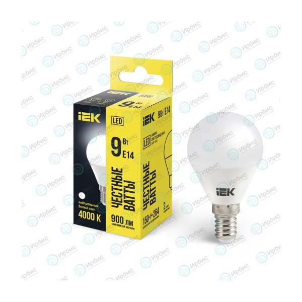 Лампа светодиодная G45 шар 9Вт 230В 4000К E14 IEK