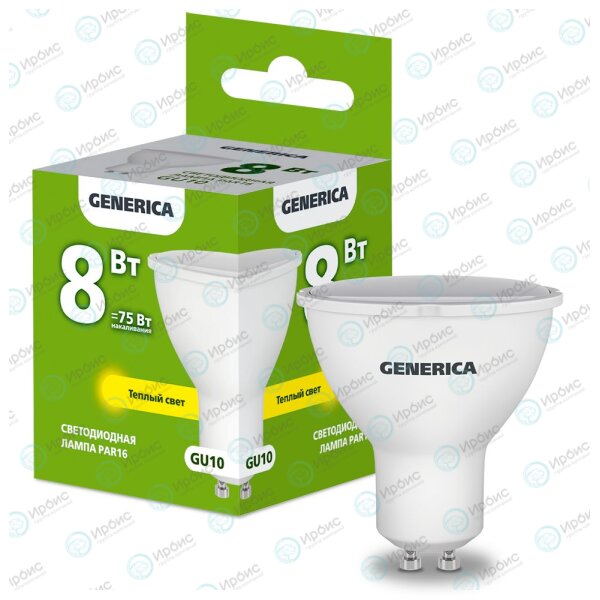 Лампа светодиодная PAR16 софит 8Вт 230В 3000К GU10 GENERICA