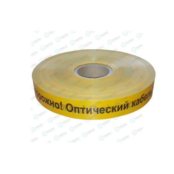 Предназначена для предупреждения механических повреждений линий связи при проведении земляных работ. Изготовлена из полиэтилена желтого цвета. На ленту наносится непрерывная надпись чёрного цвета «ОСТОРОЖНО! ОПТИЧЕСКИЙ КАБЕЛЬ». Содержание надписи и размер шрифта могут изменяться по письменному согласованию или при заключении договора на поставку. Лента сигнально-предупредительная укладывается в траншеи на расстоянии 30-40 см над кабелем связи или защитными полиэтиленовыми трубами с оптическим кабелем внутри. Лента может прокладываться в грунтах всех категорий механизированным или ручным способами при температуре окружающего воздуха от минус 10 ºС до плюс 50 ºС. Лента обладает стойкостью к агрессивным средам (бензин, керосин, 25% растворы щелочей и кислот). Срок службы не менее 25 лет.
