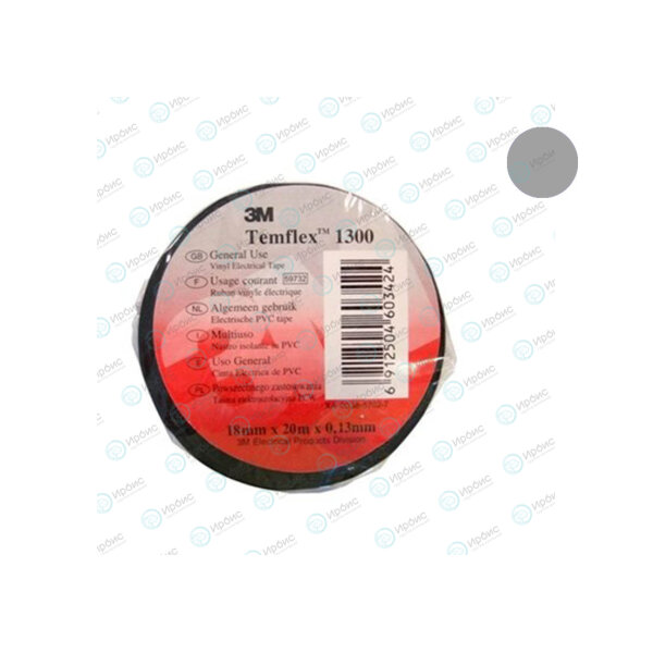 Изолента 0,13х15мм, 10м, серая, Temflex 1300