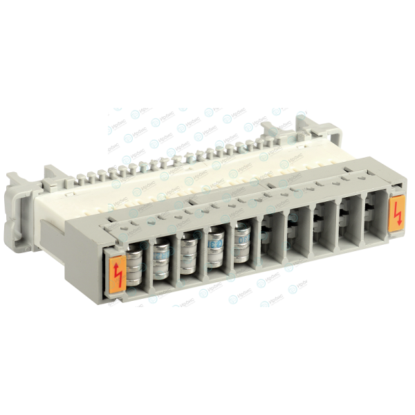 Используется для защиты пар плинтов от кратковременных скачков напряжения совместно с 2-3 полюсными разрядниками