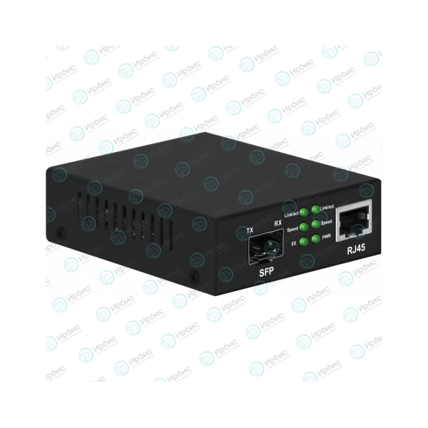 Медиаконвертер Gigabit Ethernet, SFP 1000Мбит/c, RJ45 10/100/1000Мбит/c, поддержка LFP. Металлический корпус. БП DC12V(1A) в комплекте. Размеры (ШхВхГ): 70x25x95мм. Вес: 0,2кг. Рабочая температура: -10…+55°С. Совместим с шасси NS-MCB-14.