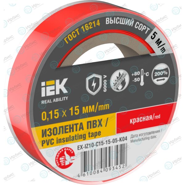 MIXTAPE 7 Изолента 0,15х15мм красная 5м IEK