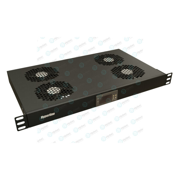 Модуль вентиляторный 19", 1U, 4 вентилятора, с термостатом, черный, Hyperline TRFA-WB-MICR-4F-RAL9004