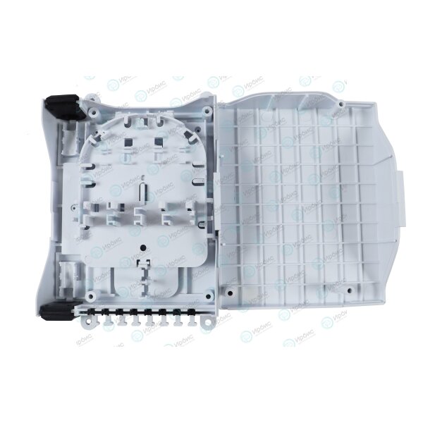 Внутри муфты расположена кассета с возможностью распределения до 10 адаптеров SC и делитель PLC 1х8.