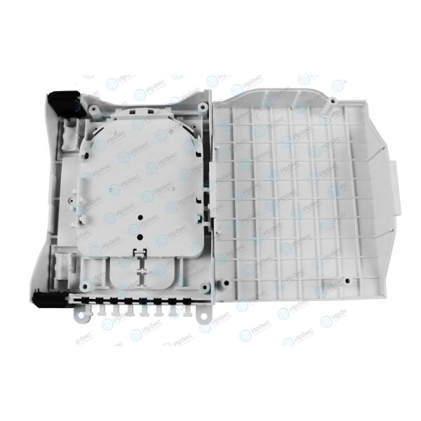Муфта-кросс FODB-2/8R изготовлена из высокопрочного АВС-пластика и обладает степенью защиты IP54. Имеет крепление, что позволяет производить монтаж не только на стене, но и на фасадах и опорах линий связи при помощи монтажной ленты и скреп.