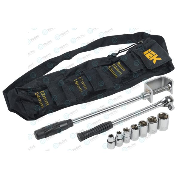 Набор состоит из струбцины, реверсивного трещоточного ключа и набора сменных головок. Струбцина применяется для фиксации изделий со срывными болтами. Возможно использование струбцины для разворота и ориентирования жил кабеля. Реверсивный трещоточный ключ и набор сменных головок позволяют осуществить монтаж с минимальными усилиями.
