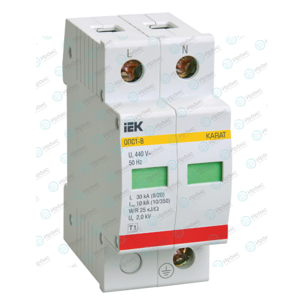 Ограничитель импульсных перенапряжений ОПС1-B 2Р In=30kA Un=400B Im=60kA, IEK MOP20-2-B