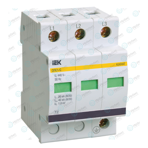 Ограничитель импульсных перенапряжений ОПС1-C 3P In=20kA Un=400B Im=40kA, IEK MOP20-3-C