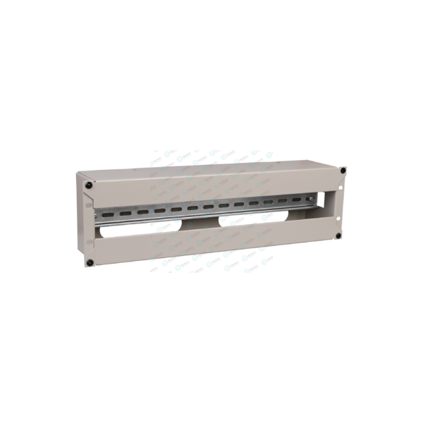 Панель имеет высоту 3U, состоит из корпуса, лицевой съемной крышки и непосредственно DIN-рейки. На обратной стороне предусмотрены окна для ввода кабелей в панель. Электрораспределительная панель устанавливается на вертикальные монтажные профили с помощью крепежа винт-шайба-гайка. На корпусе предусмотрена возможность организации заземления изделия.