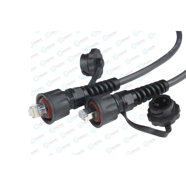Hyperline PC-IE-LPM-STP-RJ45-RJ45-C5e-10M-BK Промышленный патч-корд F/UTP, экранированный, IP67, категория 5e, с защитными крышками, 10 м, черный