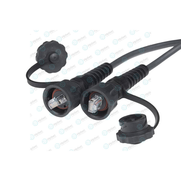 Hyperline PC-IE-LPM-UTP-RJ45-RJ45-C5e-3M-BK Промышленный патч-корд U/UTP, IP67, категория 5e, с защитными крышками, 3 м, черный