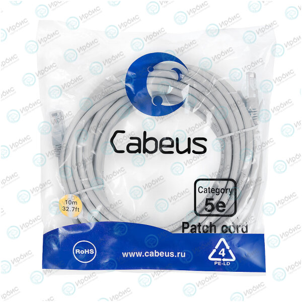 Патч-корд 4 пары, 2хRJ45, 20м, Кат.5e, UTP, серый, LSZH, Cabeus PC-UTP-RJ45-Cat.5e-20m-LSZH