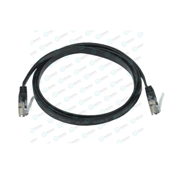Патч-корд 4 пары, 2хRJ45, 5м, Кат.6, UTP, черный, PVC, плоский, ITK PC09-C06U-5M-FL