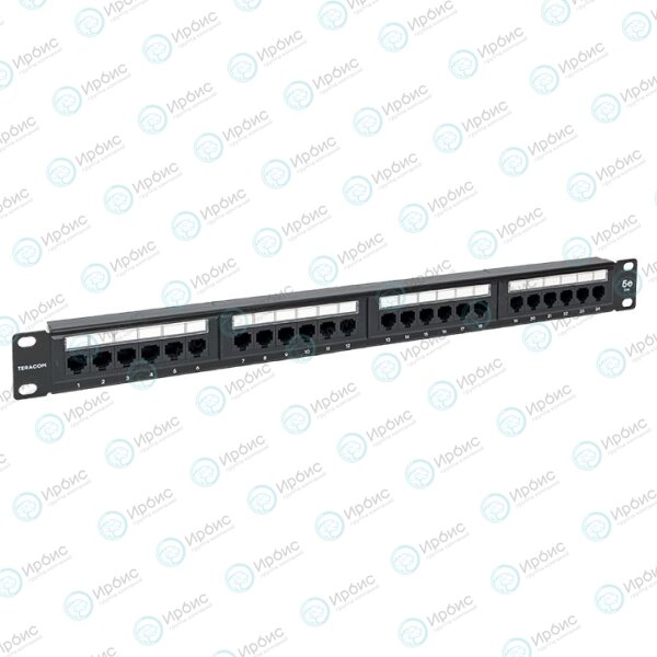 Патч-панель 1U, 19'', 24хRJ45, UTP, кат.5e, 110тип, TERACOM TRC-PPNL-5EUTP-1U24