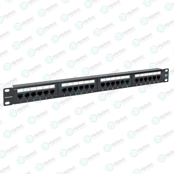 Патч-панель 1U, 19'', 24хRJ45, UTP, кат.5e, тип 110, TERACOM TRC-PPNL-5EUTP-1U24
