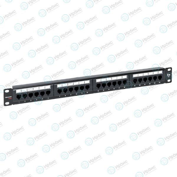 Патч-панель 1U, 19'', 24хRJ45, UTP, кат.5e. Dual IDC TERACOM TRP-PPNL-5EUTP-1U24