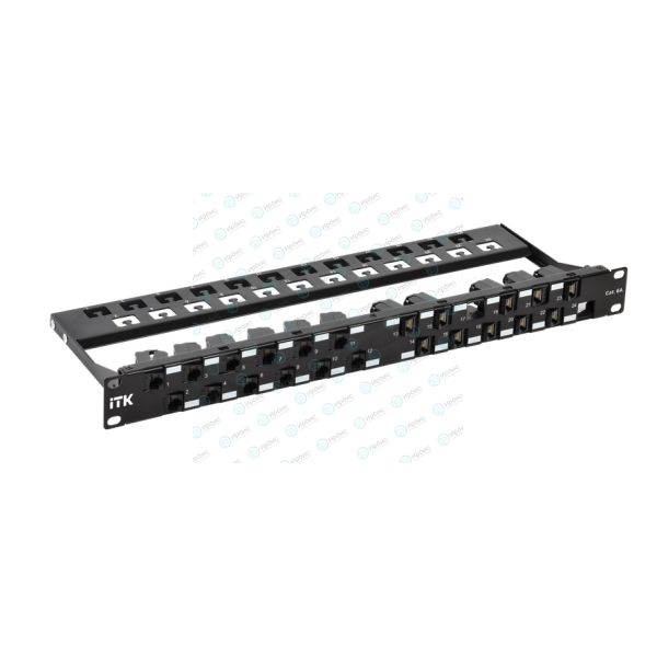 Коммутационные панели или патч-панели являются важнейшей частью любой СКС и IT-инфраструктуры здания и сооружения с большим количеством информационных розеток и терминальных портов конечных пользователей, которые необходимо коммутировать на порты активного сетевого оборудования, размещенного в серверных и распределительных узлах. В зависимости от способа крепления, масштабности кабельной системы, типа сети ITK изготавливает патч-панели для настенного монтажа или монтажа в 19-дюймовый конструктив, по количеству портов: 12-, 24-, 25-, 48-, 50-, категорий: 3 (телефонные), 5E, 6, 6A, в экранированном исполнении и без защитного экрана.
