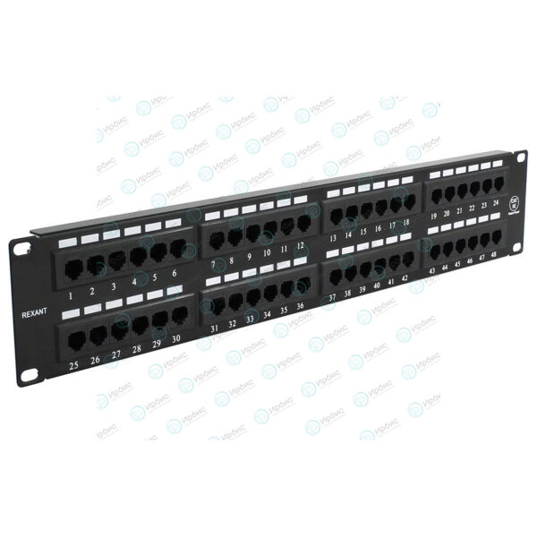 Патч-панель 2U, 19'', 48xRJ45, UTP, кат.5e, черная, REXANT 04-0022