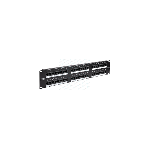 Патч-панель 2U, 19'', 48xRJ45, UTP, кат.5e, Dual, слайд лейбл, черная, ITK PP48-2UC5EU-D05L