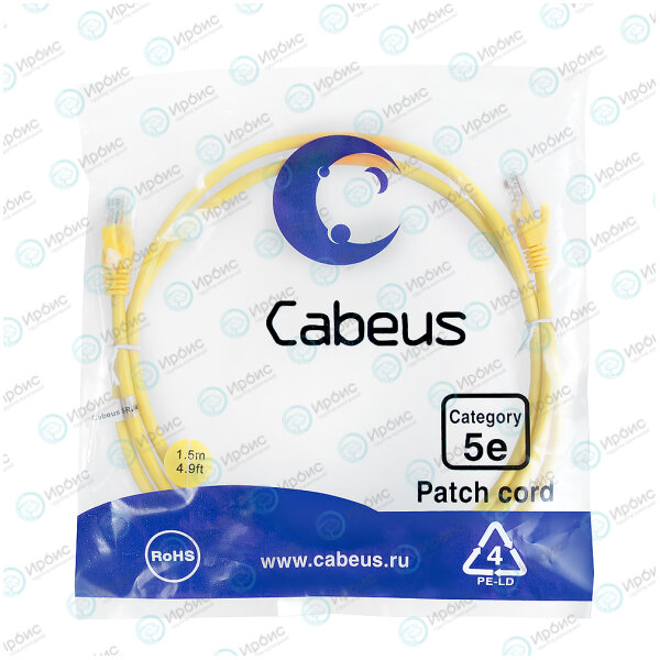 Патч-корд 4 пары, 2хRJ45, 1.5м, Кат.5e, UTP, желтый, LSZH, Cabeus PC-UTP-RJ45-Cat.5e-1.5m-YL-LSZH