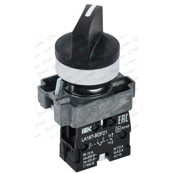 Переключатель LA167-BDF21 на 2 положения 1NO черный IEK