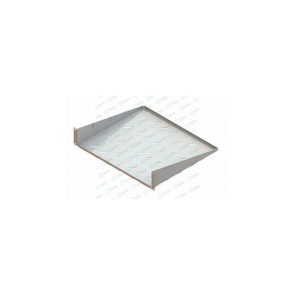 Консольная полка 2U переднего крепления на направляющие шкафов и стоек 19”. Предназначена для размещения малогабаритного оборудования, не имеющего стандартного 19” крепления. Полка имеет перфорацию, позволяющую охлаждать технологическое оборудование. Максимально разрешенная нагрузка -20 кг. Покрытие – порошковая ударопрочная краска, светло-серая (RAL7035). Толщина стали составляет 1,3 мм. Установка консольной полки производится путем крепления на направляющие 19” с помощью стандартного крепежа – квадратных гаек, винтов М6 и пластиковых шайб.