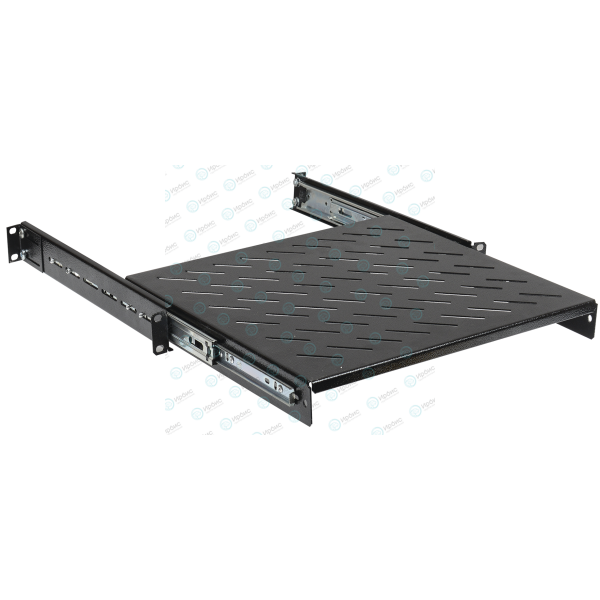 Полки для шкафов и стоек ITK предназначены для размещения на них внутри шкафа оборудования, приборов и аппаратуры, не имеющих кронштейнов и уголков крепления на 19" профили напрямую. К такому оборудованию относятся аккумуляторные батареи, не стоечные ИБП, KVM-консоли, измерительные приборы, медицинское оборудование и прочее. Выдвижные полки крепятся на фронтальные и на задние профили, имеют перфорированную поверхность для обеспечения лучшего охлаждения и отведения теплых воздушных потоков, а за счёт наличия специальных телескопических салазок способны плавно выдвигаться вперед за пределы рабочей плоскости, образованной передней парой 19'' профилей. Данные полки рассчитаны на оборудование, требующее регулярного обслуживания и извлечения из шкафа, но с небольшой общей массой, чтобы избежать его опрокидывание и возможной поломки выдвижного механизма полки.