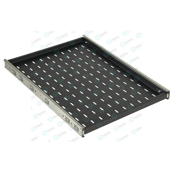 Предназначена для размещения оборудования, которое требует периодического обслуживания. Полка выполнена из металла 1,5 мм, имеет телескопические направляющие, обеспечивающие плавное выдвижение. Монтажные кронштейны фиксируют полку к вертикальным направляющим шкафов и стоек в четырех местах. Глубина монтажных кронштейнов регулируется, что позволяет устанавливать полку на необходимую глубину. Распределительная нагрузка на полку составляет 30 кг. Поставляется в разобранном виде.