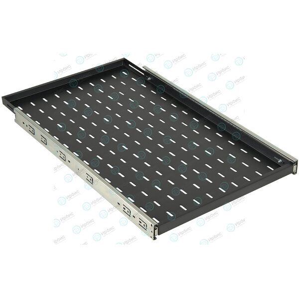 Предназначена для размещения оборудования, которое требует периодического обслуживания. Полка выполнена из металл 1,5 мм, имеет телескопические направляющие, обеспечивающие плавное выдвижение. Монтажные кронштейны фиксируют полку к вертикальным направляющим шкафов и стоек в четырех местах. Глубина монтажных кронштейнов регулируется, что позволяет устанавливать полку на необходимую глубину. Распределительная нагрузка на полку составляет 30 кг. Поставляется в разобранном виде.