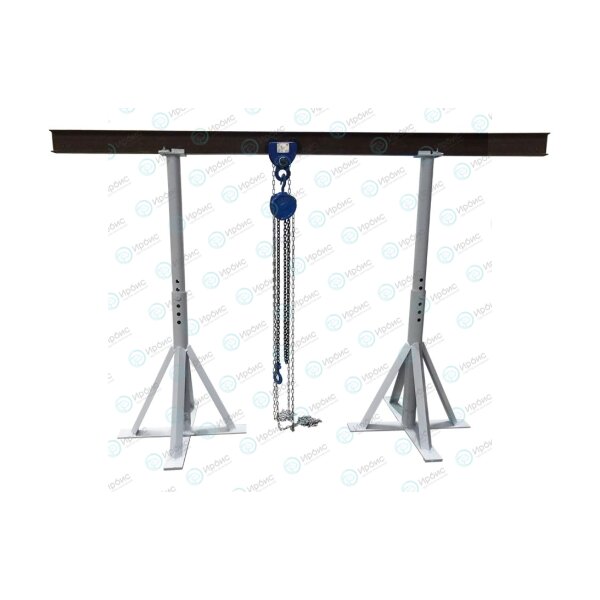Подъёмный механизм состоит из сборных элементов при помощи которого осуществляют подъём, опускание, перемещение вдоль оси трёхметровой балки железобетонного устройства УАЗк-ССД. Высоту данного механизма можно изменять при помощи регулировочного болта и отверстий в стойках.