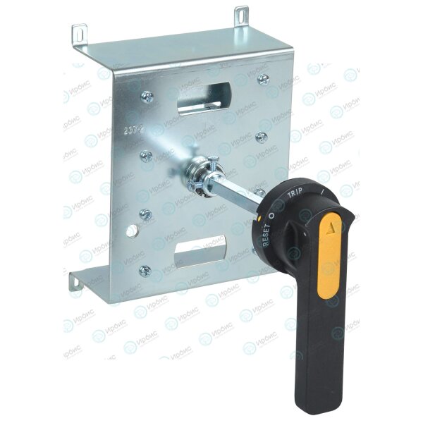 Ручной поворотный привод ПРПм предназначен для преобразования вращательного движения в поступательное для управления автоматическим выключателем ВА88 MASTER. Привод закрепляется на двери распределительного устройства для оперирования выключателем через дверь или непосредственно на выключателе.