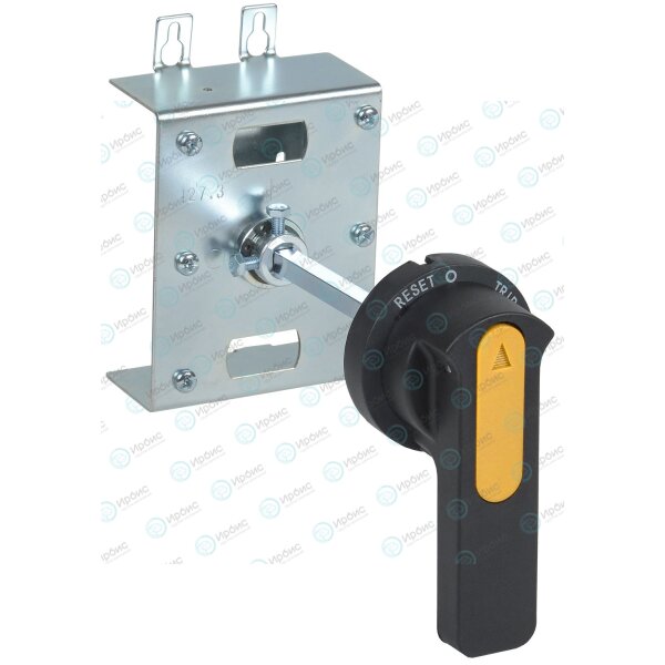 Ручной поворотный привод ПРПм предназначен для преобразования вращательного движения в поступательное для управления автоматическим выключателем ВА88 MASTER. Привод закрепляется на двери распределительного устройства для оперирования выключателем через дверь или непосредственно на выключателе.