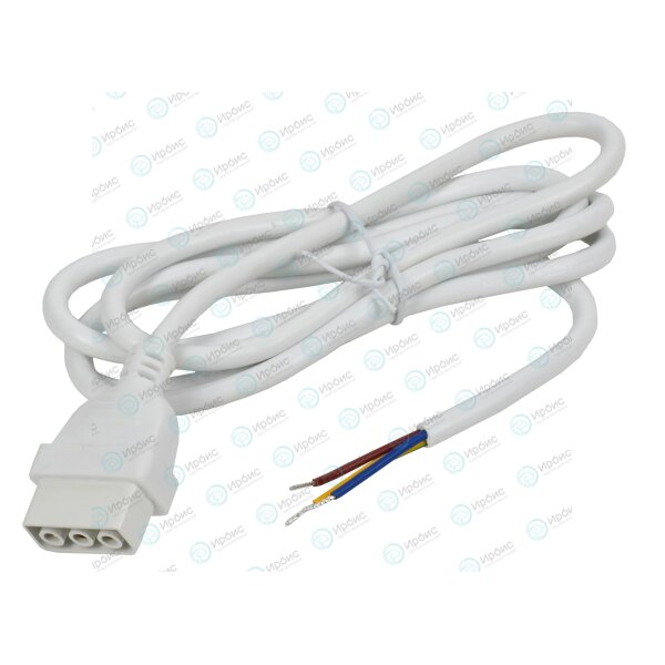 Кабель питания белого цвета с сечением проводников 3*0,75. Длина кабеля составляет 1,5 м. Применяется для подключения к сети линейных светильников серии 1020, 1022.