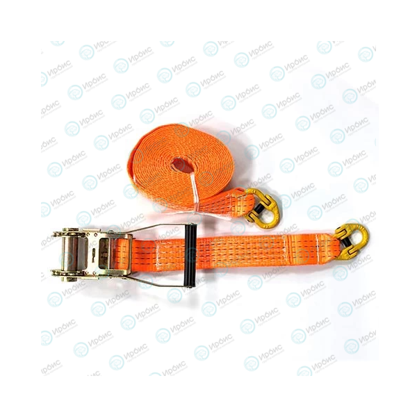 Стяжной ремень оснащен соединительными элементами для крепления к анкеру или такелажной скобе железобетонной плиты. Установка ремней происходит по схеме крепления, а натяжение обеспечивается с помощью храпового механизма.