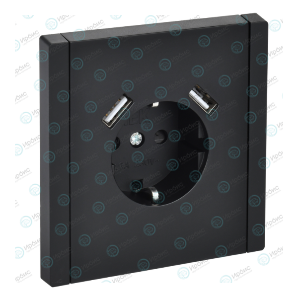Розетка 1-местная с заземлением с защитными шторками винтовое крепление 16А USB A+A 3,1А FP145, FORTE&PIANO, черный, IEK FP-R14-16-U21-D31-K02