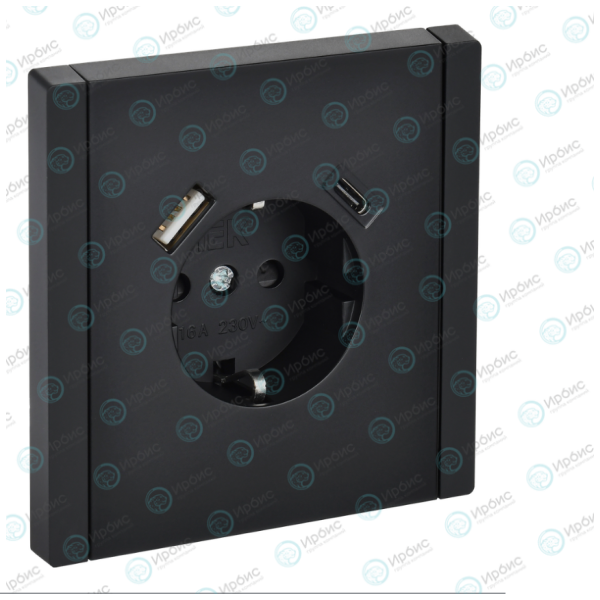 Розетка 1-местная с заземлением с защитными шторками винтовое крепление 16А USB A+C 18Вт FP147, FORTE&PIANO,черный, IEK FP-R14-16-U22-018-K02