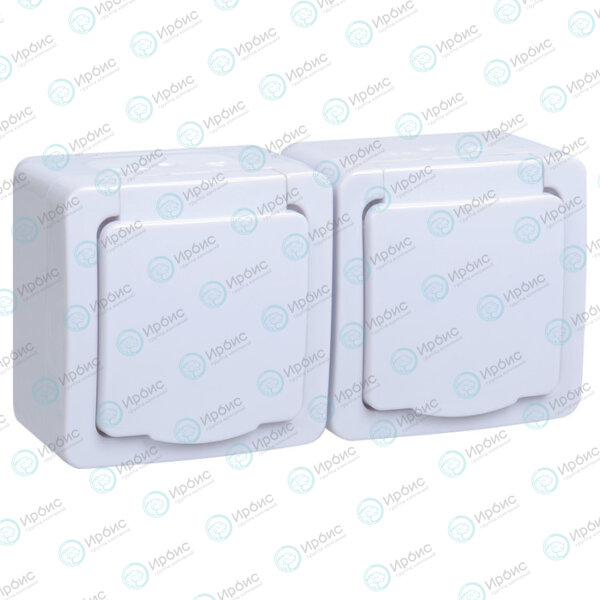 Розетка 2м с з/к о/у IP54, цвет крышки белый, ГЕРМЕС PLUS, IEK ERMP22-K01-16-54-EC
