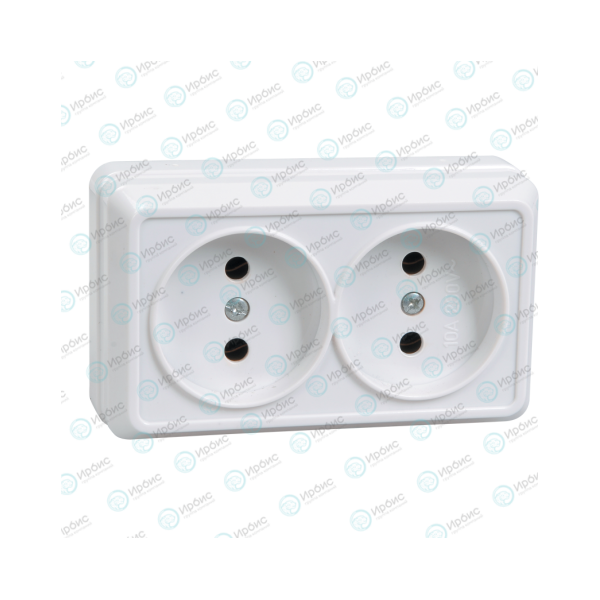Розетка 2местн. без з/к 10А откр.уст., ОКТАВА (белый), IEK, ERO20-K01-10-DC