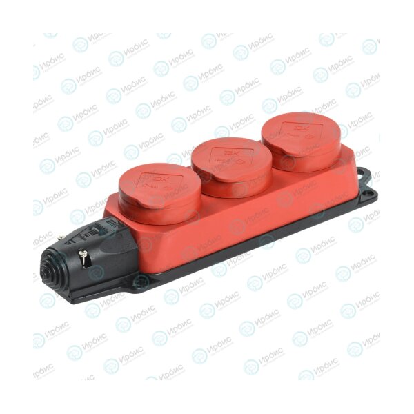 Розетка 3-местная с з/к, IP44, красная, IEK PKR61-016-2-K04